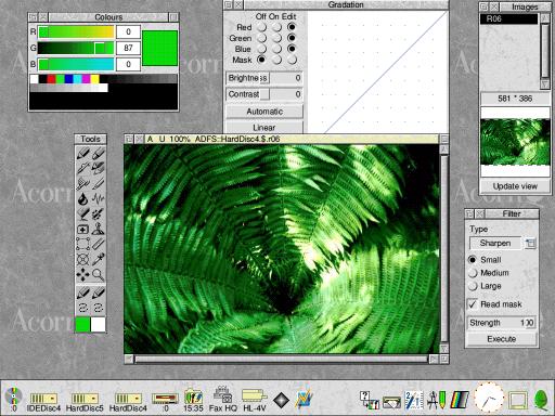 The ProgramDA's Picture is an image processor for RISC OS computers. It was launched in 1995 by Digital Arts as a commercial product, and was made freeware in 2002. There is a program with the same name for Atari computers and they are related. It follows that you can use filters from the Atari with the RISC OS version too. The program works with RISC OS 3.5 and above.